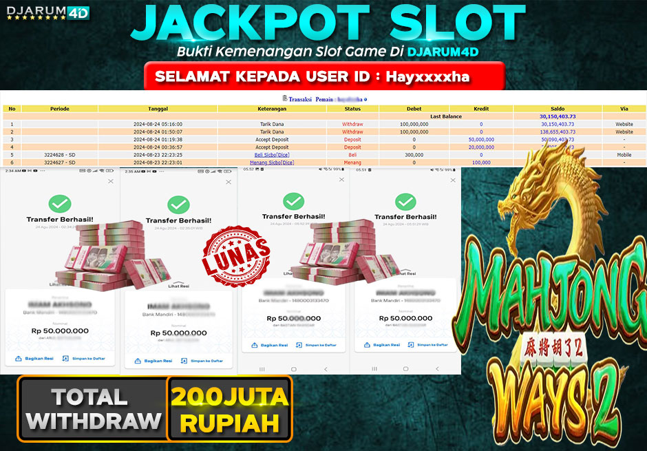 PEMBAYARAN JACKPOT RP.200,000,000,- TANGGAL 24 August 2024